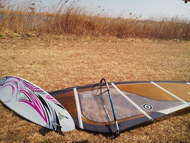 手に追えない風で何度か吹っ飛ばされましたがボードにマストアタックだけは避けたかったので顔面からセイルに着地し回避しました。
