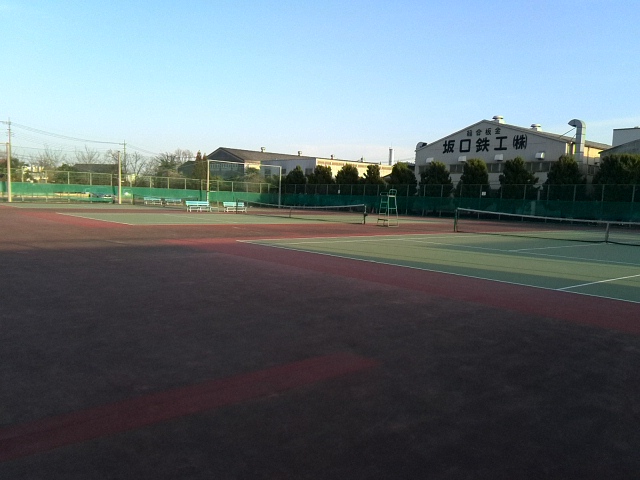 地元コートでテニスです。