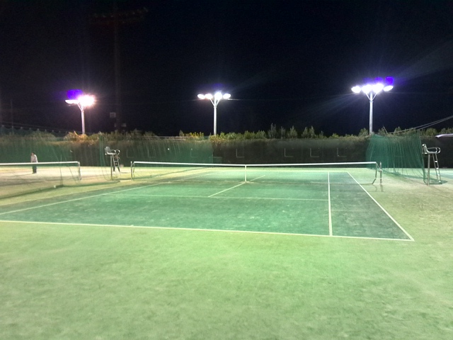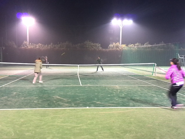 一度帰宅し昼食をとり、夕方からは坂戸運動公園のミズノテニススクールで体験です。