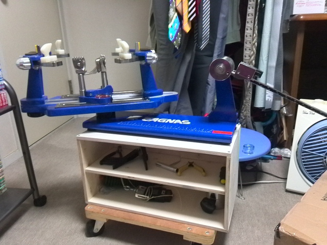 帰宅しガット張り機を設置するとなかなか良い具合。