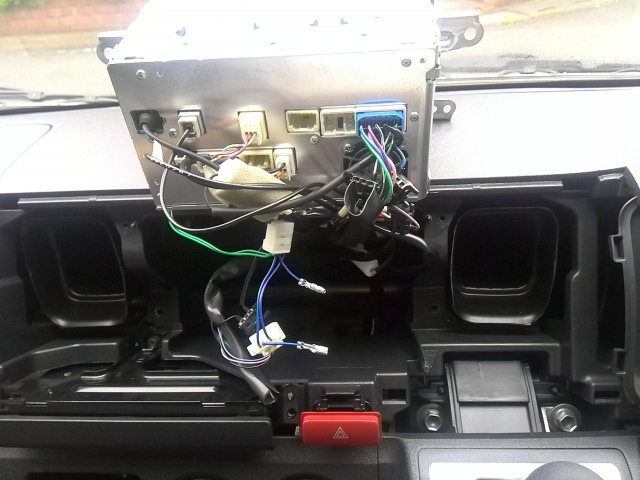 ナビ裏から配線の取り回しです。