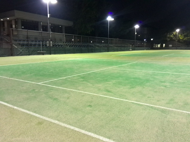 夜は身体がだいぶツライけど軽くテニスです。