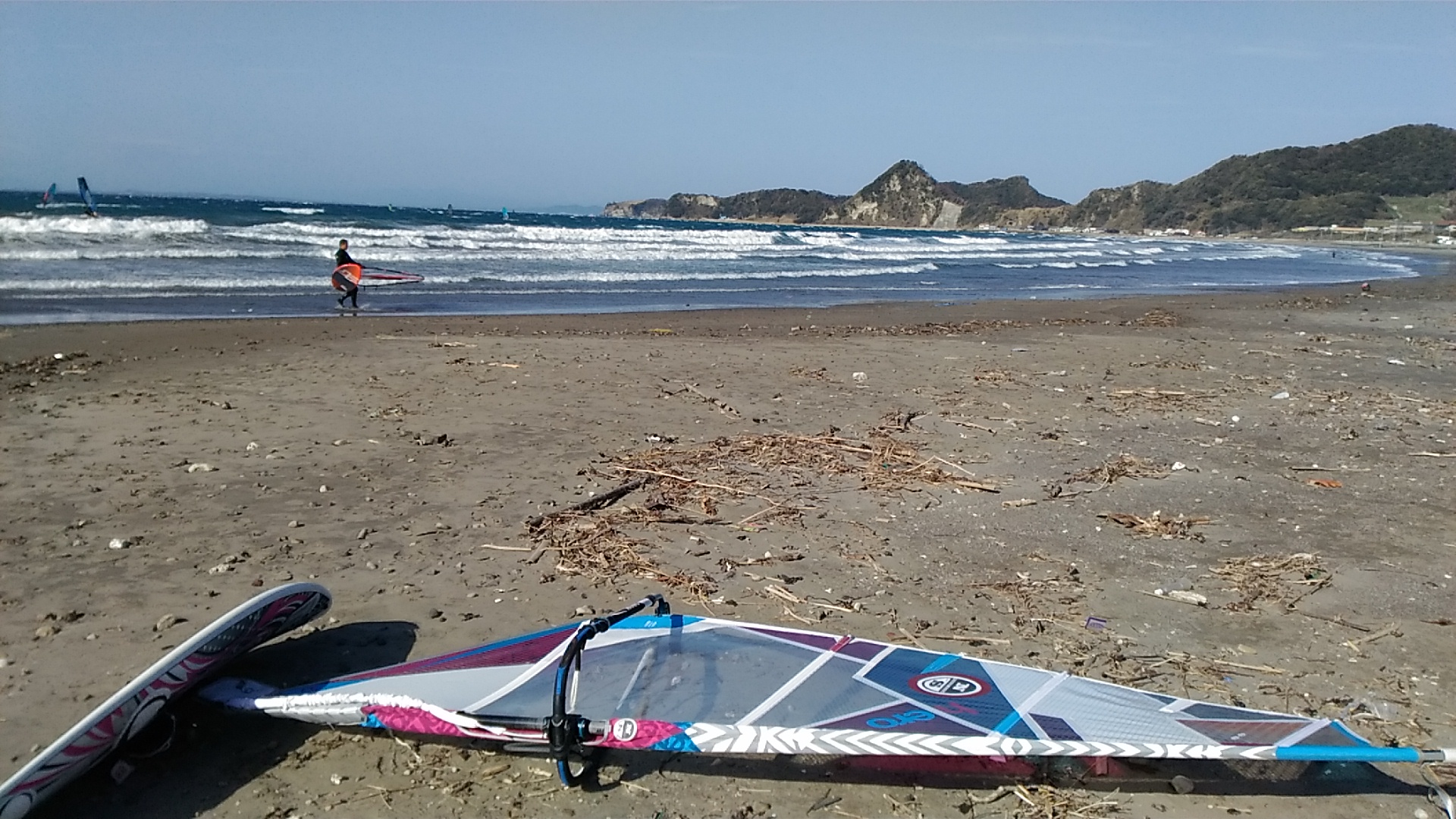 後から来た周りのウィンドサーファーはどんどん出艇していきましたが自分は待機。