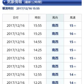 風向きは南西。