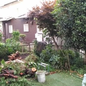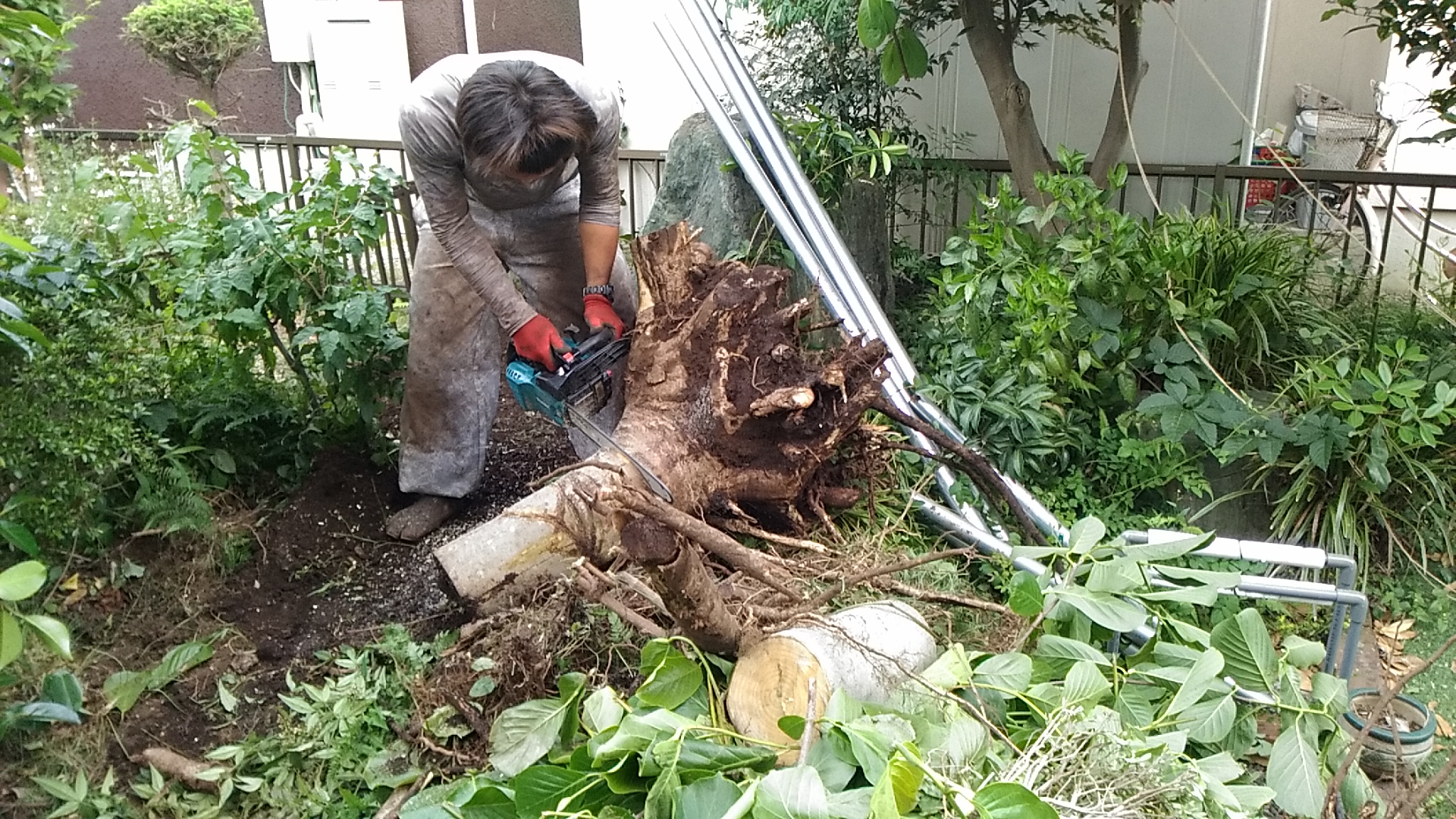 後輩の職人が来て朝から抜根です。