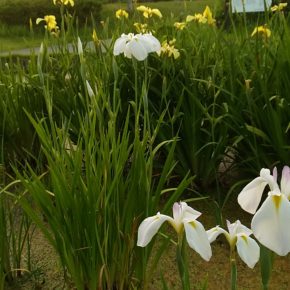 バラとちょっと菖蒲も咲き初めていました。