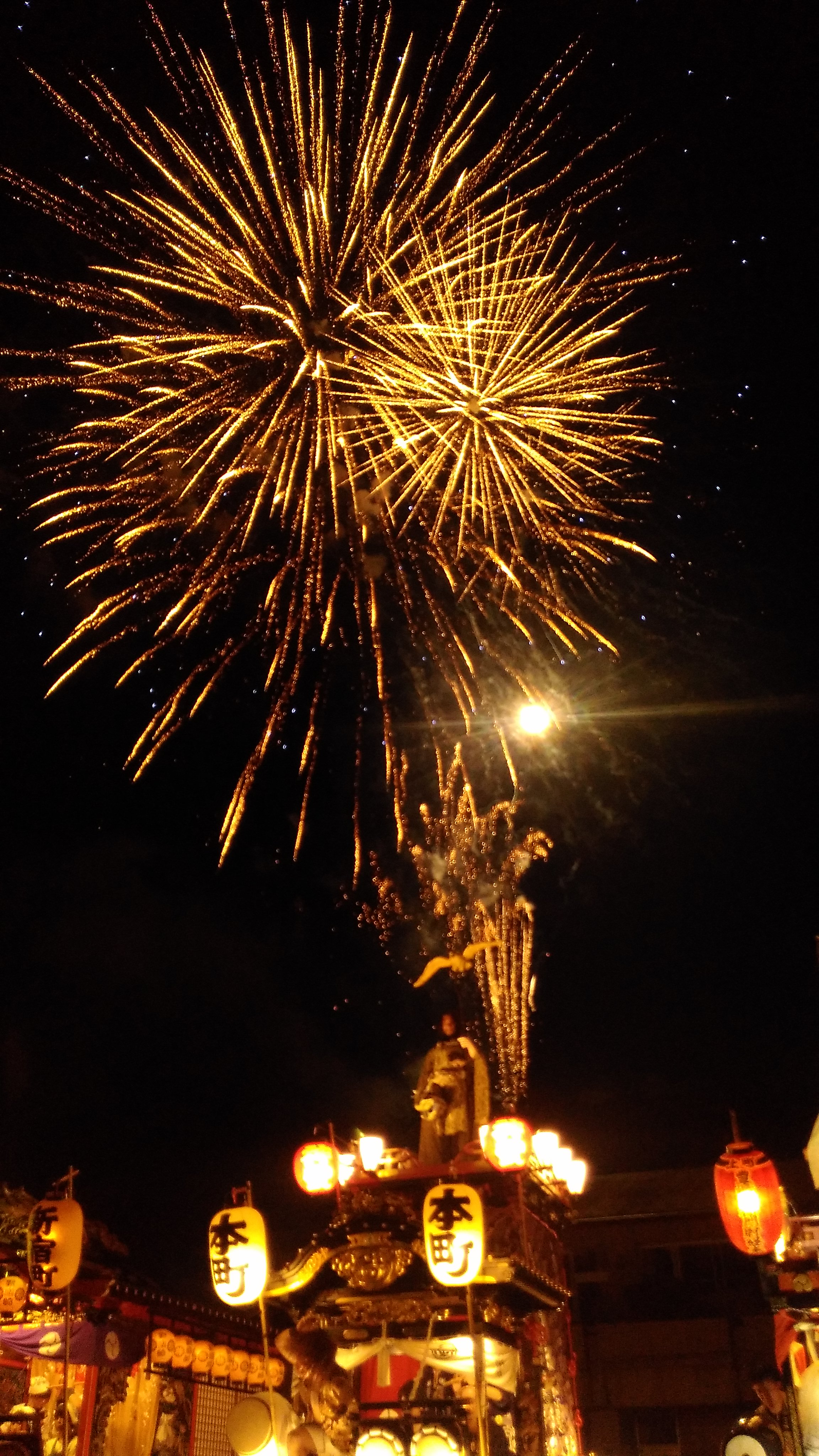 山車と花火の共演は圧巻です。