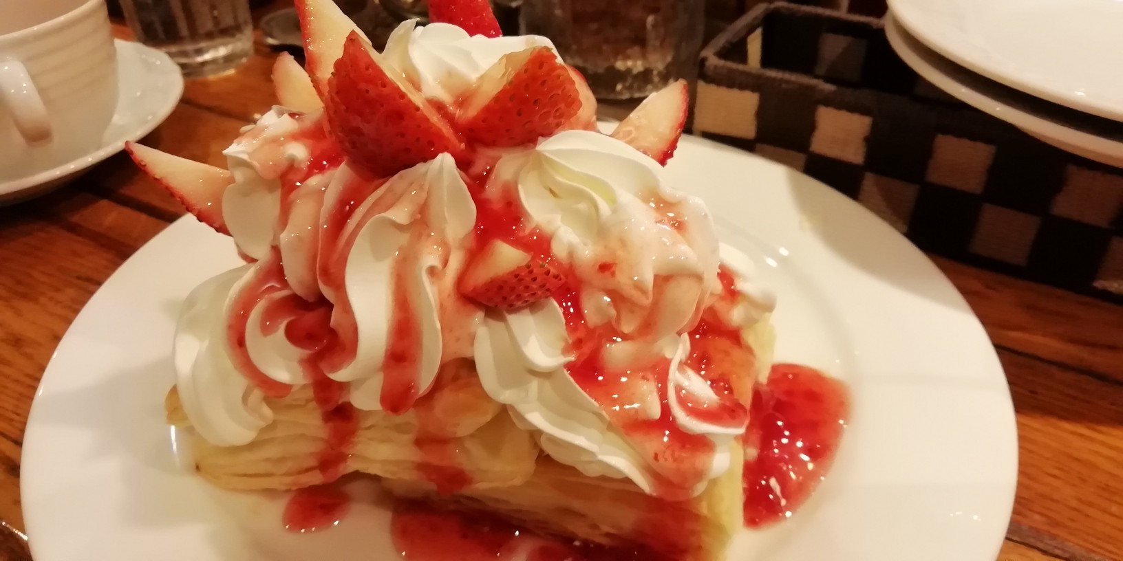 締めはいちごクリームパイ。