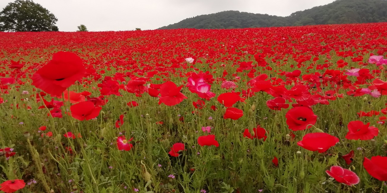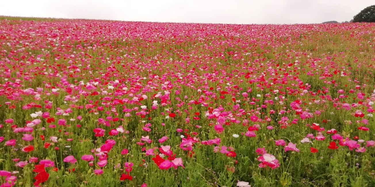 起伏をいかして植えられたらポピー畑はやはり圧巻です。