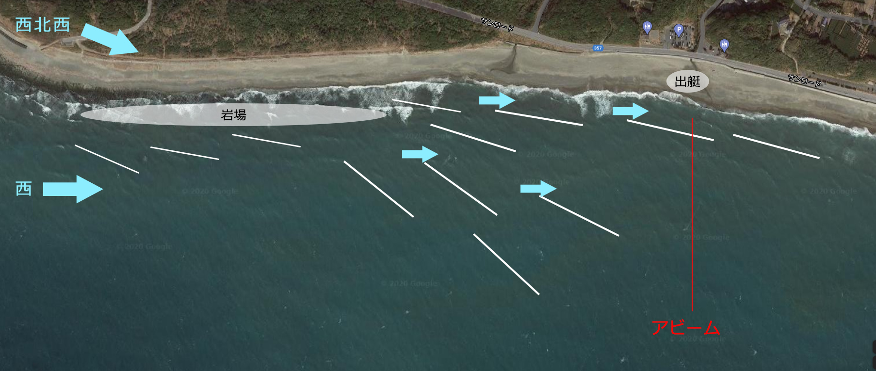 西北西でオフ、西でサイドショア。