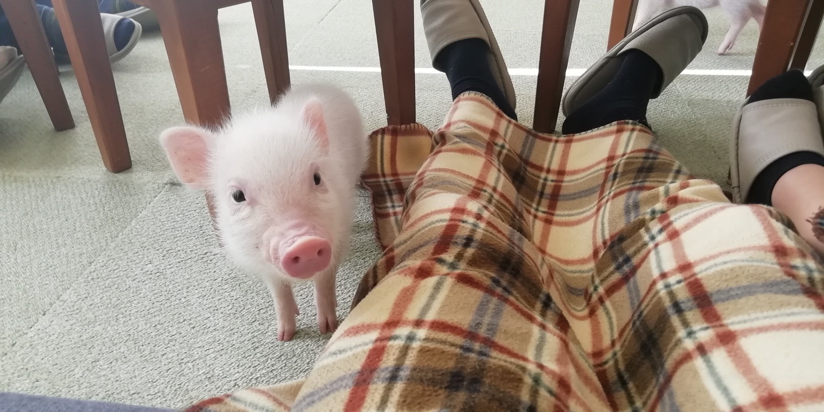 部屋ではソファーに座って待ちですが、マイクロブタの方から寄ってきてくれるor店員さんが呼んでくれます。