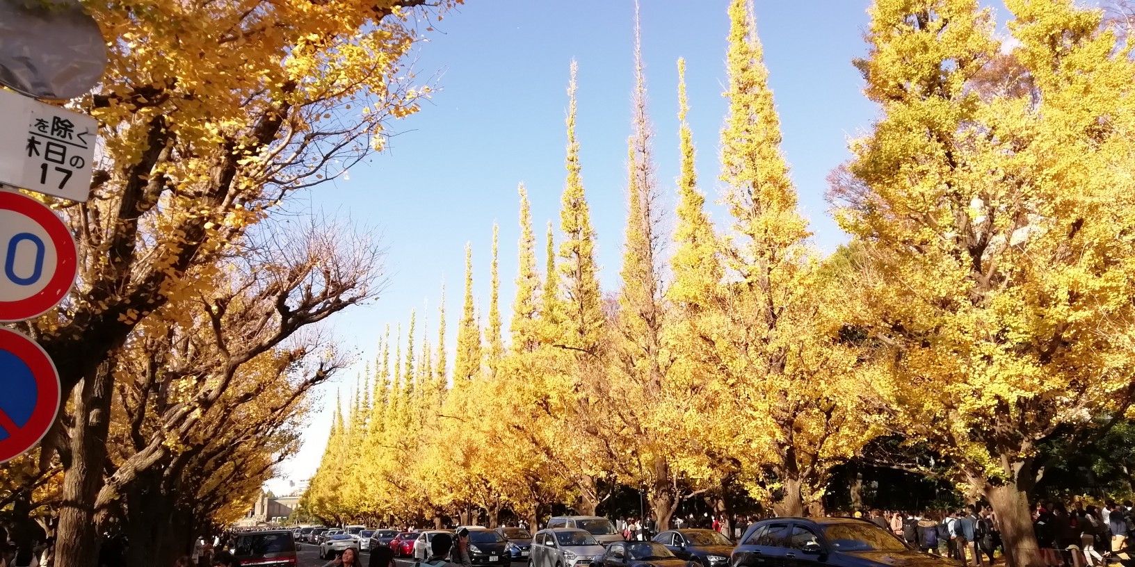 イチョウ並木は今年はホコ天やっていないようで歩道が人でごった返していました。