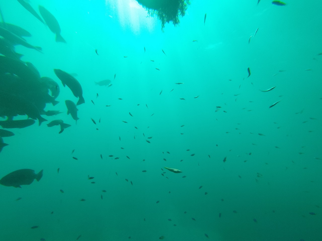 撒き餌しているようで魚も近くにうようよしていました。