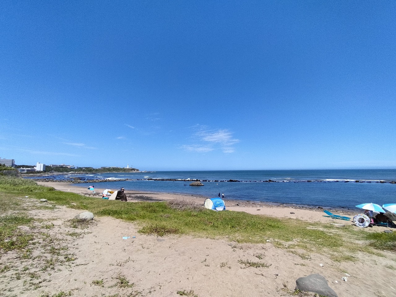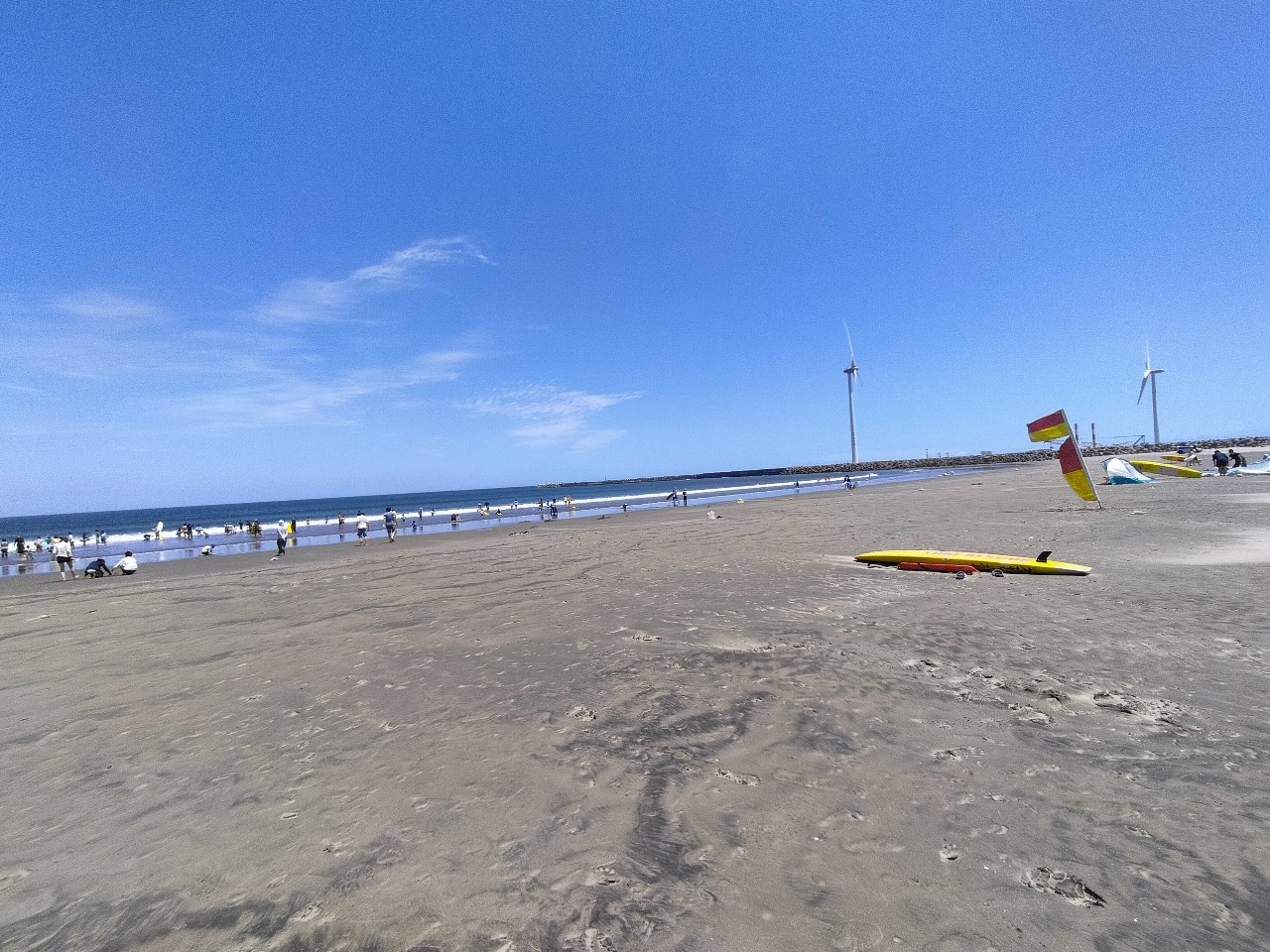 風はやや強めなものの波崎程ではなく、ライフセーバーや海水浴客、海の家もあり雰囲気海水浴場っぽいのでココにしました。