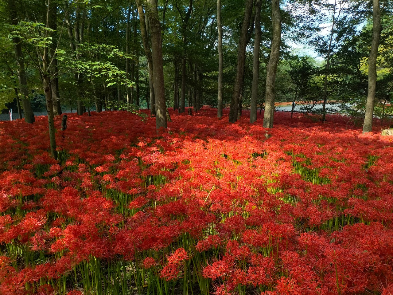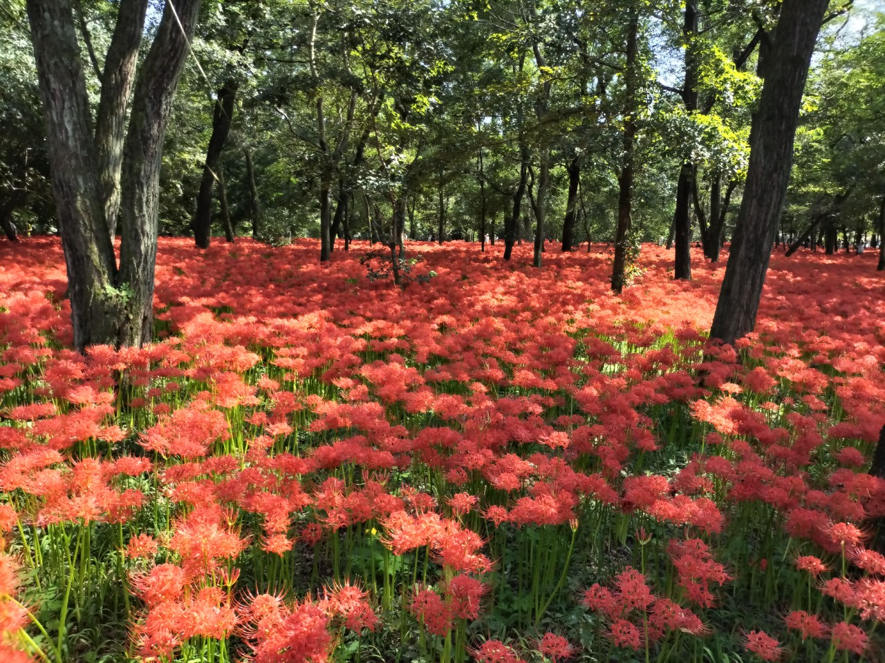 上流の彼岸花は一斉に咲いたのか密度も高く超満開。