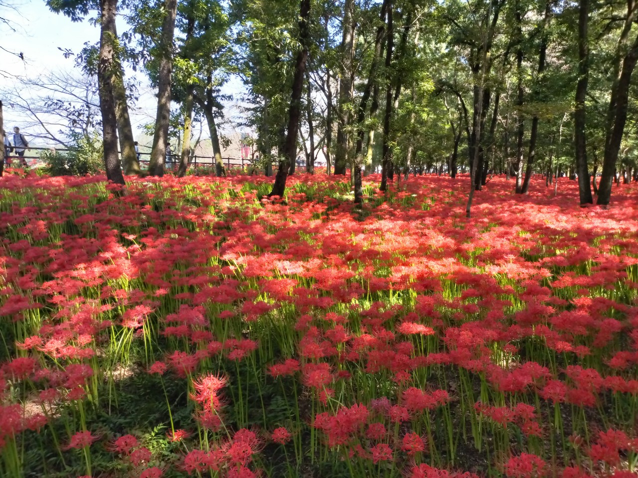 巾着田で彼岸花が見頃なのと、夏季休暇の有給も消化しないといけなかったので今年も親を連れて巾着田へ。