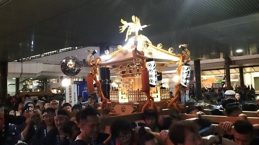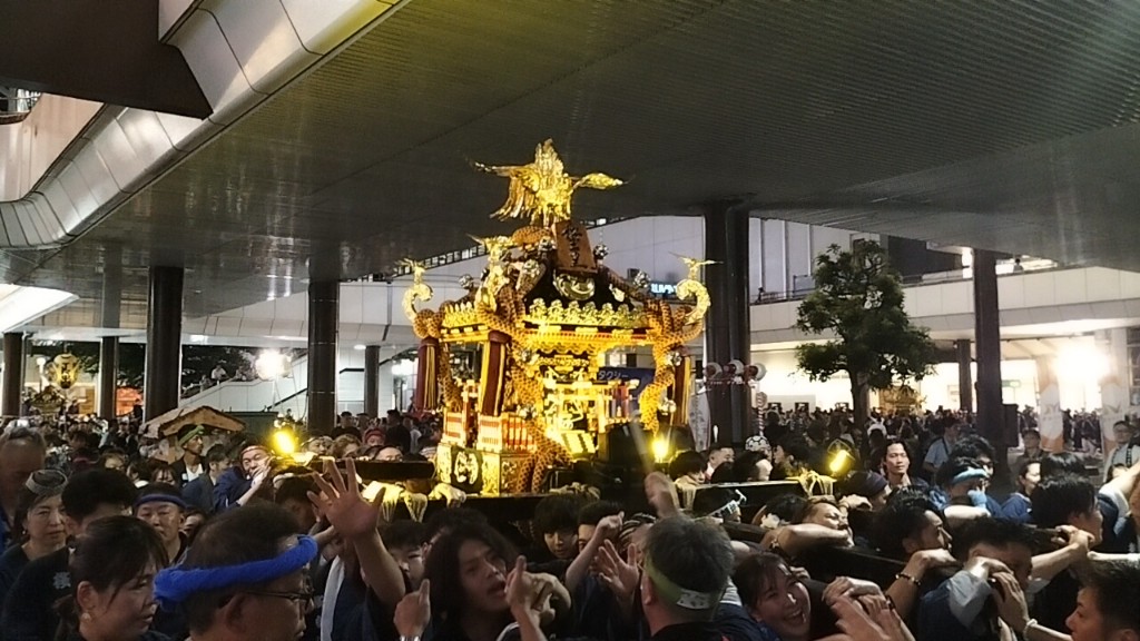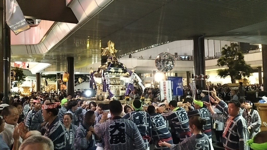 フィナーレは神輿7台が西口ロータリーに集結です。