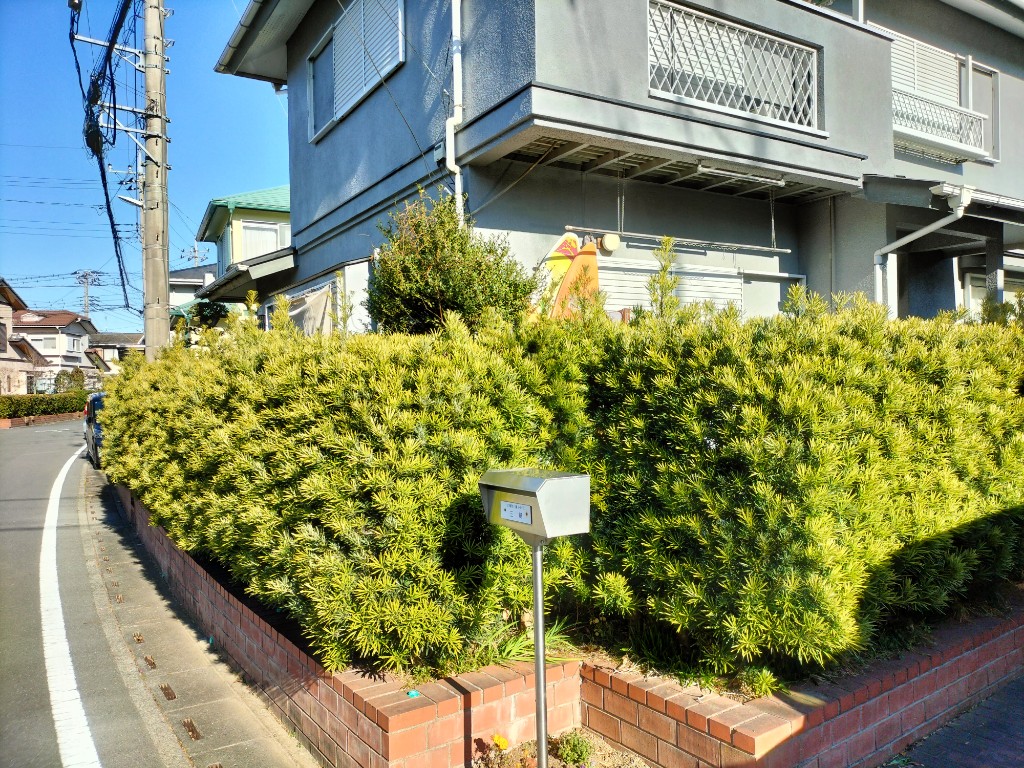 実家におせちが届くとの事で受け取りと生垣の剪定です。