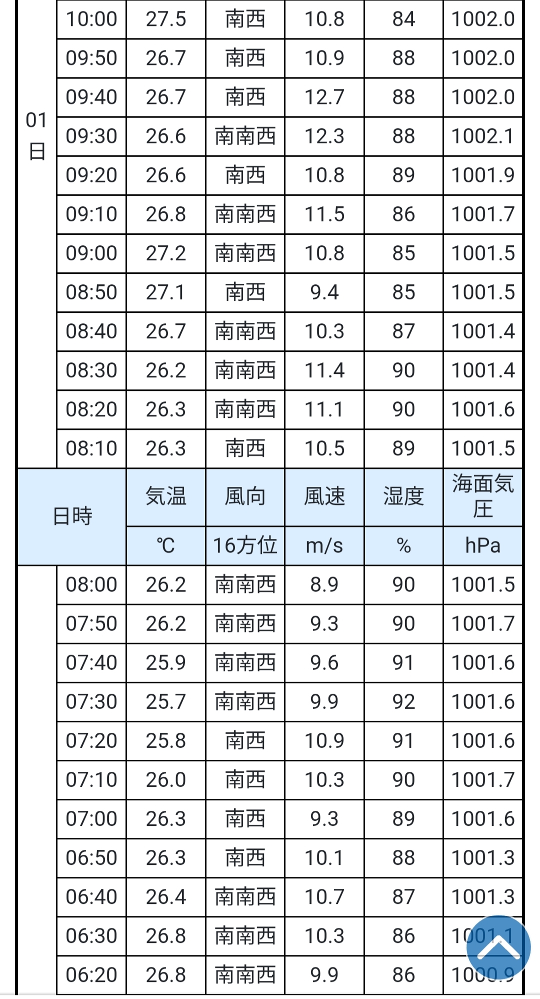 約2ヶ月半ぶりの南西です。