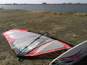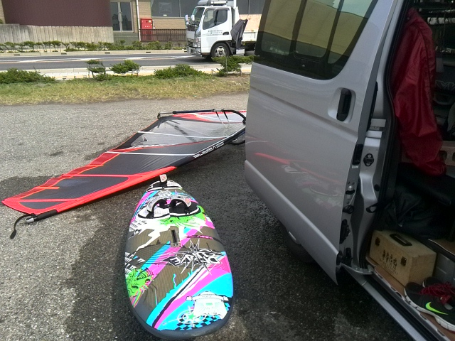 1時間半程乗って風が上がってきたのでボードチェンジ。