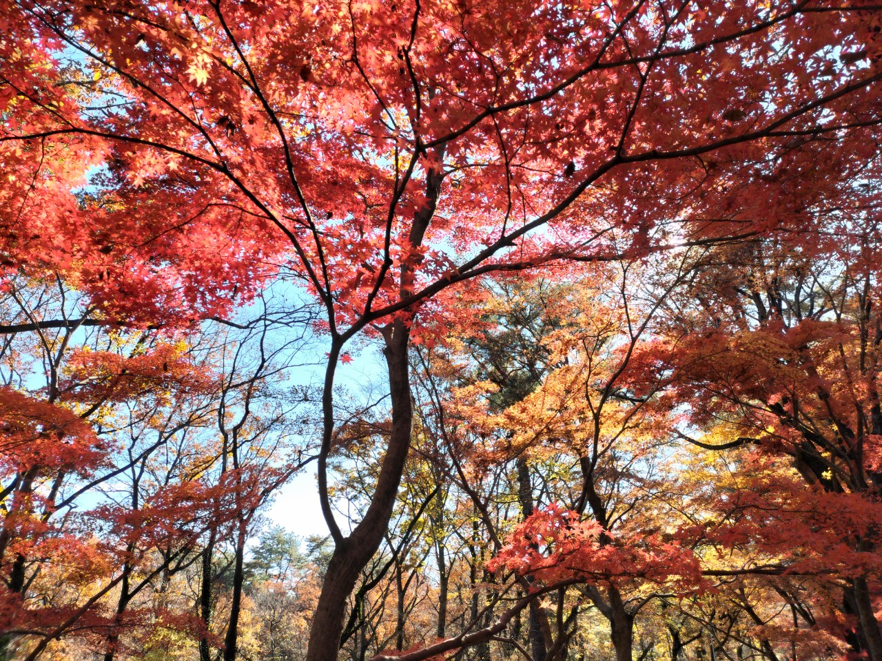 気温は低く紅葉は見頃。