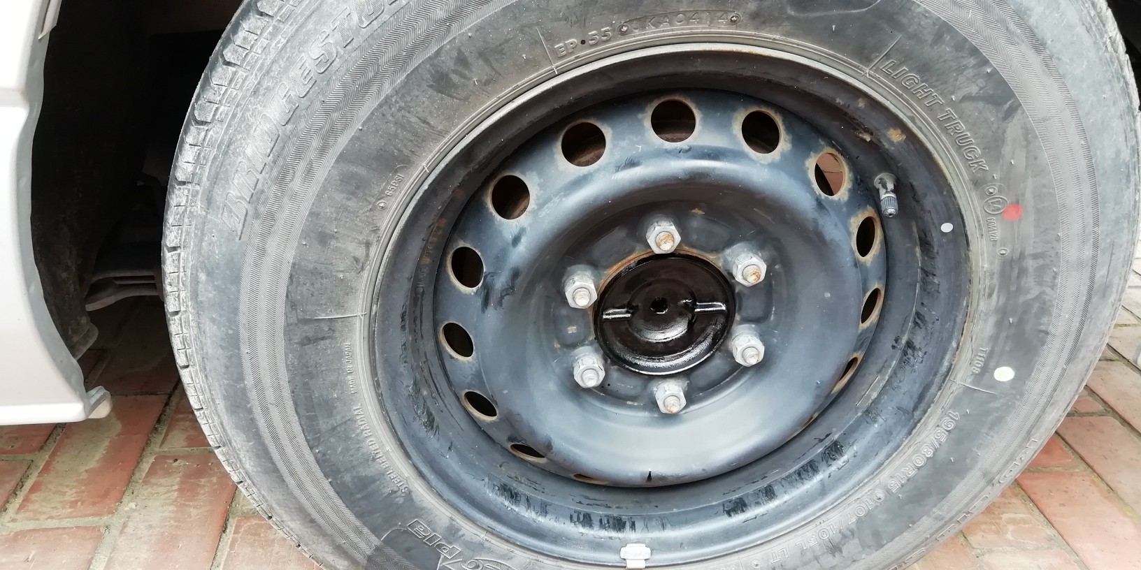 ホイールキャップが飛んで行って、錆が気になるので鉄チンホイールの着色です。